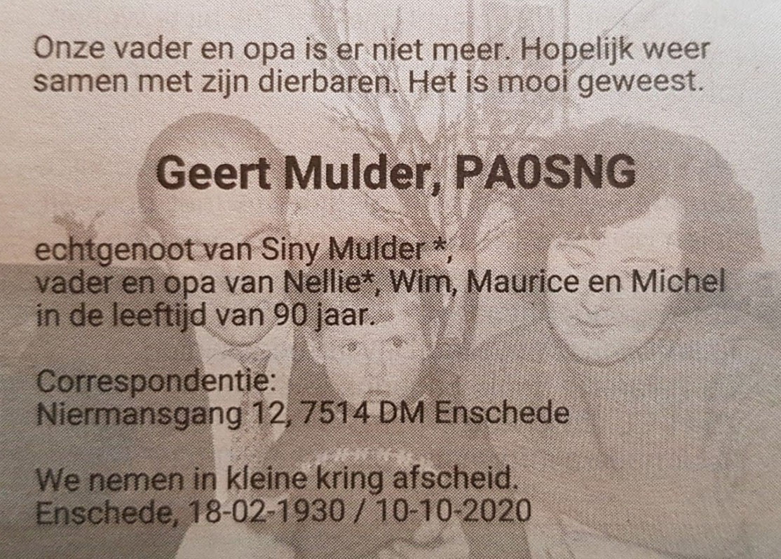 Geert Mulder, PA0SNG Silent Key.